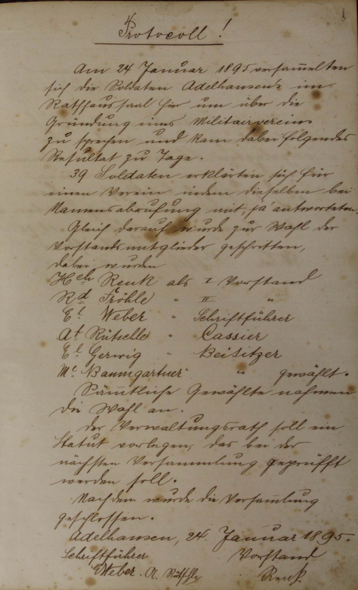 Gründungsprotokoll vom 14.Januar 1895