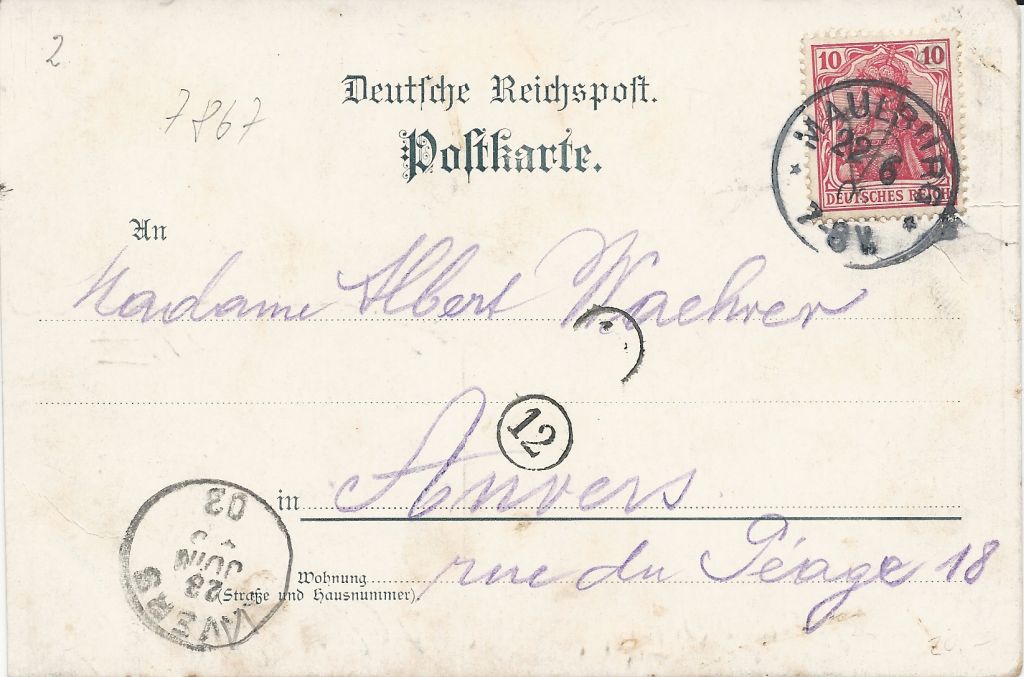 Ansichtskarte von Maulburg um 1903 von Maulburg nach Anvers (Antwerpen) in Belgien